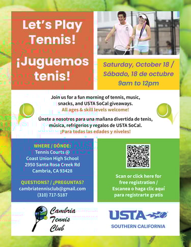 Tennis in Cambria begins with a love for the game and the joy of playing. Cambria Tennis Club is always welcoming new members who want to connect with fellow tennis enthusiasts and to enjoy the best of Central Coast tennis.